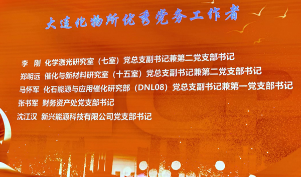 6月29日,大连化学物理研究所所举办庆祝中国共产党成立101周年暨“一先两优”表彰大会。金年会金字招牌至上网站支部书记沈江汉同志,荣获大连化物所“优秀党务工作者”称号,副所长、党委委员王峰颁发了表彰证书。